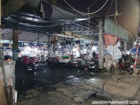 この通りの向こうには在来市場が広がっていた。夜中なので閑散としていたが、翌朝になれば活気みなぎる光景が見られるだろう。