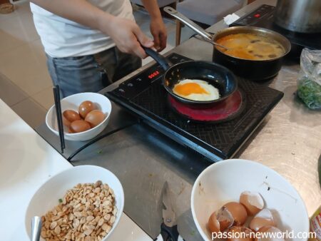 フォーの次は目玉焼きを注文。「サニーサイドアップで」というと、見事なダブル目玉焼きをこさえてくれた。パンと一緒に食す。