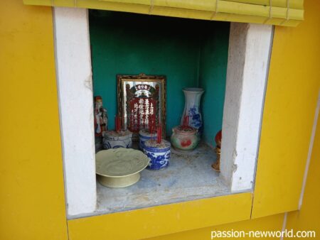 工事現場の囲いに小さな祠が。こんなところにも神々が宿っている。