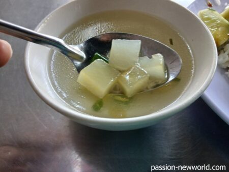 スープの具材は冬瓜かな。ナタデココのようにぷりぷりしていて旨い。