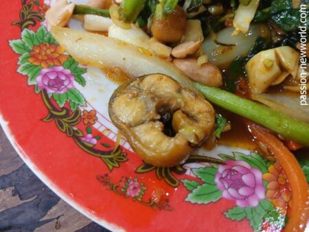 確かにウナギぽい魚のぶつ切りが入っている。具材は長ネギ、ニンジン、玉ねぎか。大量のニンニクとピーナッツがウナギの脂濃さを中和してくれている。いい仕事しているじゃないか!