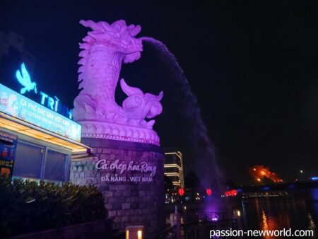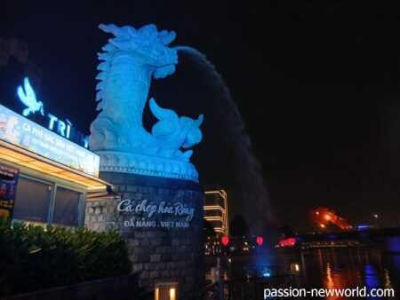 マーライオンが水を噴射中w 正式にはTượng Cá Chép Hóa Rồng(鯉が龍に変身する像)と呼ばれている。マーライオンではなくマードラゴンなんだとか。