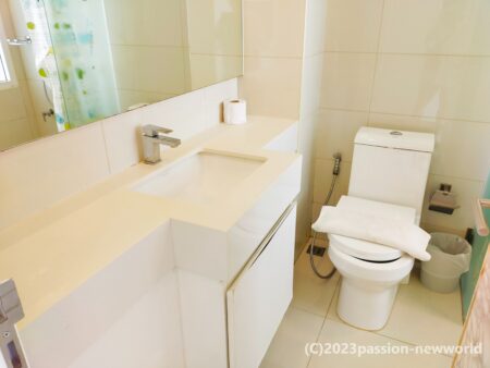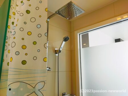 トイレと浴室は仕切りガラスがあるので、シャワーでトイレがびしょびしょに濡れることはなかった。