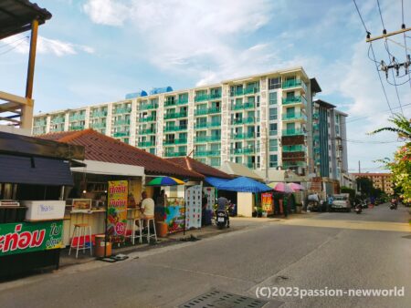 近くにはリーズナブルなムーガタのお店や食道が軒を連ねていて食事には困らない。問題はパタヤ中心地からの距離だ。ブアカオ常設市場から徒歩10分くらいだが、サードロードの信号のないところを横切るのは度胸がいる。CCR界隈はまずまず賑わってはいるが、周辺を歩き回りたい人にとっては、危険なサードロード横断がネックになりそう。中心地から離れてのんびり過ごしたい、という人には候補になるはずだ。