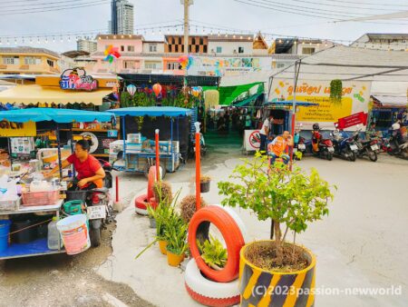 ソイ・ブアカオからのんびり歩きながらウォーキングストリートへ向かう途中にあるブアカオ市場。北に位置する常設市場の数倍は広い大規模市場だ。