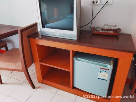 テレビは旧式ブラウン管。冷蔵庫は小さめ。