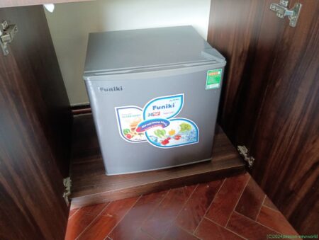 部屋はまあまあ広い。冷蔵庫は電源が入っておらず自分でコードをコンセントに差し込んだ。