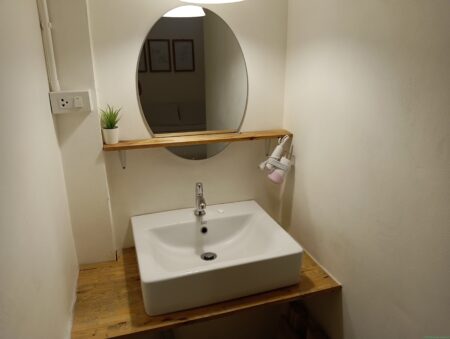 室内は今までタイでは経験したことがないほどキレイ。鉢植えがなんとも落ち着いた雰囲気。感動するのは洗面台だ。シンプルかつオシャレ。