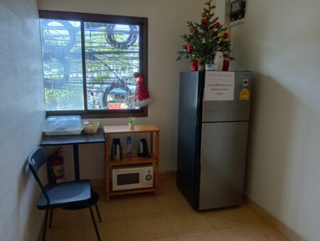 冷蔵庫と電子レンジは廊下にあり共用となる。