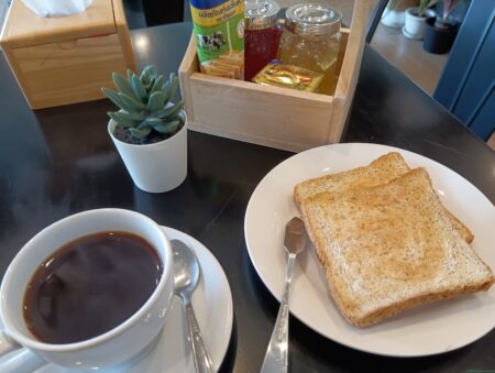 朝食は1階カフェでコーヒーとトースト。卵がついていたらもっといいのだが。チェックアウトが午前11時と早いためチェックアウト後、カフェで数時間、パソコンで作業をした。お店のお姉さんはもちろん快諾だ。