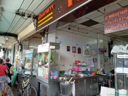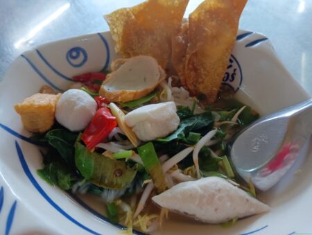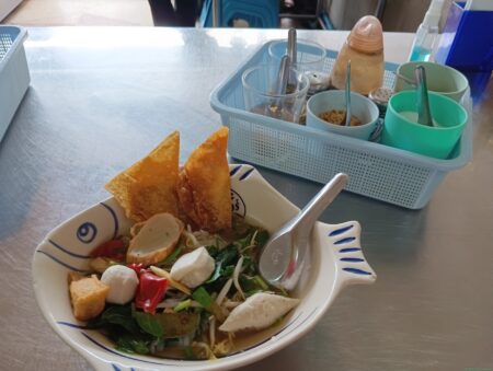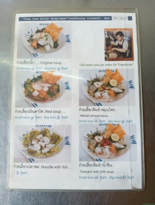 セブンイレブンの並びにあるこの2軒。地元の住民が朝から利用しているようだ。まずは手前の店に入ってみた。外国人観光客用に英語用のメニューがある。右真ん中のハーブヌードルを注文した。