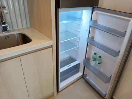 大型冷蔵庫の中にはミネラルウォーター2本。