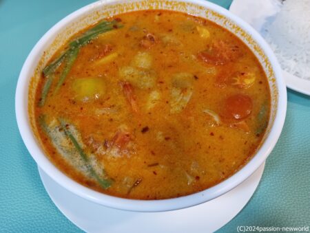 中身が良く見えないが、スプーンですくってみると、すごいボリュームの食材がいろいろと入っている。エビ、トマト、玉ネギ、ショウガ、ネギのようなハーブなどなど。今回は純粋にトムヤムクンの味わいを楽しむため、他の料理は頼まずライスのみ。地元の人はこういう食べ方するのかな?