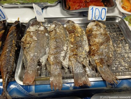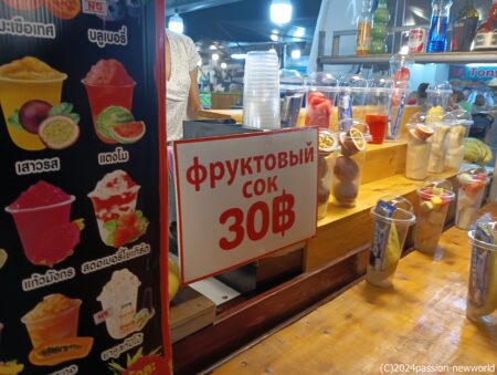 パタヤからもジョムティエンからも少し遠いが、ソンテウに乗ってやってきても十分元は取れる。しかも、市場内のお店はどこも安く、焼魚100バーツ、スムージー30バーツとこちらもパタヤ価格の半分ほど。