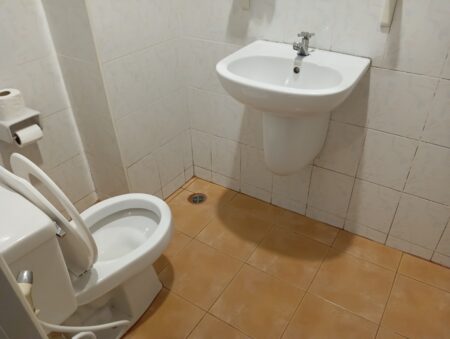 トイレと浴室は一緒。シャワーを浴びると床が濡れる例のパターン。