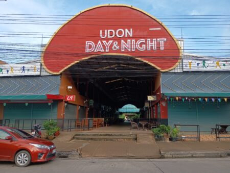 バンコクからコンケーンへ。そして鉄道でウドンターニーに到着。駅前には大型商業施設のほか大規模な屋内屋台街があり活気があふれている。ここから徒歩5分ほどでトップ ホステル ウドーンターニーに到着。