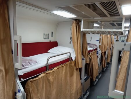順調に走行する列車。おしゃべりしていたタイ人グループもいつの間にかそれぞれのベッドに移動し静かな車内。スマホをながめているうちにいつの間にか寝入ってしまった。冷房が意外に寒いので何度か起きてしまう。備え付けの毛布をしっかりかぶって再び目を閉じた。それから8,9時間。到着が近づいてくると係員がベッドの収納にとりかかる。起こされた乗客がまだ眠そうな顔をしている。