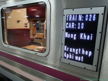 列車番号は「26」。バンコクのクルンテープ・アピワット中央ターミナル駅(バンスー駅)到着は午前5時50分。