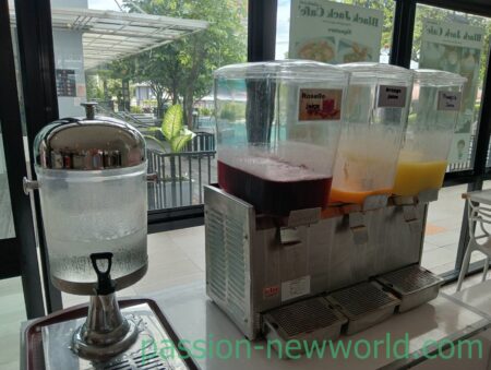 総菜類はレッドカレー、ウインナー、目の前で焼いてくれる目玉焼き、野菜炒め、サラダ、フルーツなどそれほど品数は多くないが、味は悪くない。特にお粥はおいしかった。
