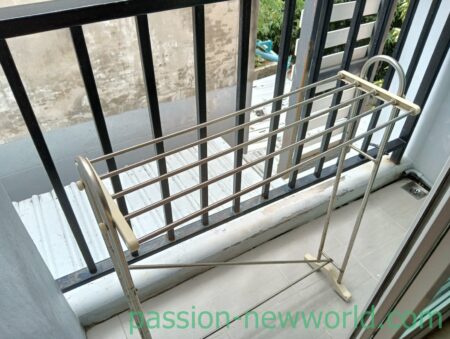 シャワーとトイレは一緒。ただ、トイレまで水浸しになることはなかった。浴室にドライヤーがあり、靴下を乾かすのに便利。ベランダは狭い。