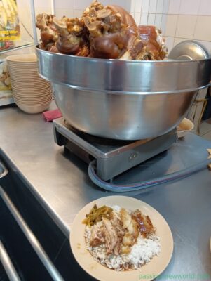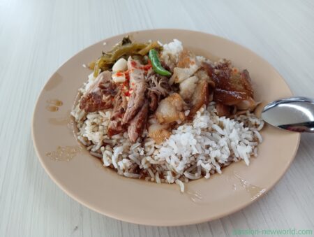 構内はかなり広く飲食店が多い。フードコートを発見したので豚足煮込みご飯を注文した。50バーツ。