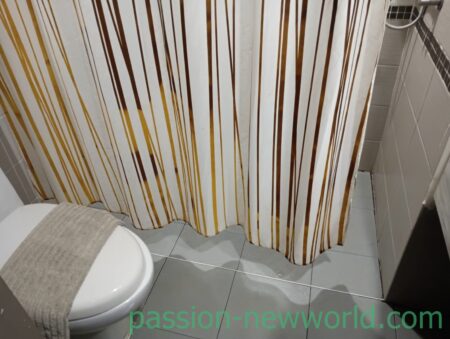 トイレとシャワーはカーテンがあるが、それでもトイレの床まで濡れる。