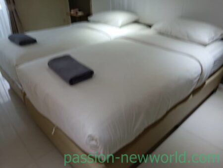 旅行サイトの口コミ評価が不思議と高いのだが、これは新棟に泊まった客の印象なのだろう。筆者の泊った部屋はゲリラ豪雨のせいもあってジメジメして風通しが悪く、室内のカーテンはシミだらけ。壁の汚れも目立つ。ほとんど廃墟寸前といってもよいほど。とりあえず、シーツや枕カバーなどはきちんとしていたので眠れないことはなかったが、全体的には落第だ。次回はあり得ないだろう。