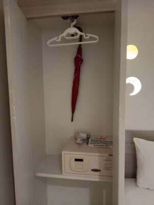 セイフティーボックスはきちんと作動する。雨傘があるのがうれしい。