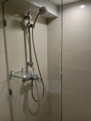 シャワースペースとトイレの間にガラス板があるためトイレの床がびしょ濡れになるということもなかった。