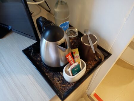 さて、部屋はというと、かなり狭い。ベッドの横にキャリーケースを広げるのがやっと。ただし、室内は清潔で日本のビジネスホテルに泊まっているかのよう。