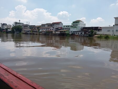 最終便を逃すとかなりややこしい。駅を出て左手に10分ほど行くとクルンスリ・リバー・ホテルがあるので、右に曲がり駐車場を通って先に進むと螺旋階段が見えてくる。そこを上に登り幹線道路の橋を渡るというルートはある。ただし、かなりの遠回りになるし夜間は暗くなるので、金銭的余裕があればタクシーやトゥクトゥクに乗り込んだ方が無難だろう。その際は必ずメーターの確認、または料金交渉をきちんとすること。