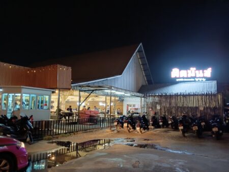 バンコク在住の友人とカオサンロードで待ち合わせし、タクシーに 乗って向かうこと約15分。川沿いのある風情のあるムーガタ店に到着した。店の名は「Tidmunz Buffet」。