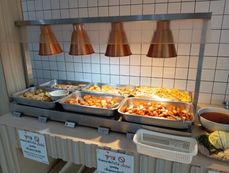 料金は1人276バーツ。肉やシーフード、野菜、ご飯類、ソフトクリームなどのスイーツ、全部合わせてのお値段なので都心より割安だ。ビールは大瓶で90バーツほど。強力な炭による熱気で冷たいビールがガンガン進む。