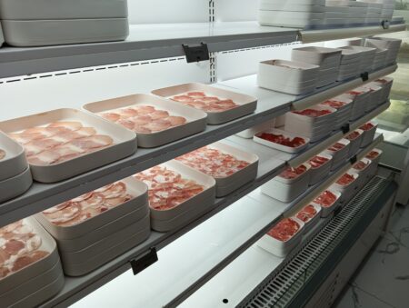 こんな口コミを見つけたが、確かに肉の種類は豊富。白い容器に入っていて衛生的だ。オープン式の冷蔵システムなので、棚の中はひんやりとしている。