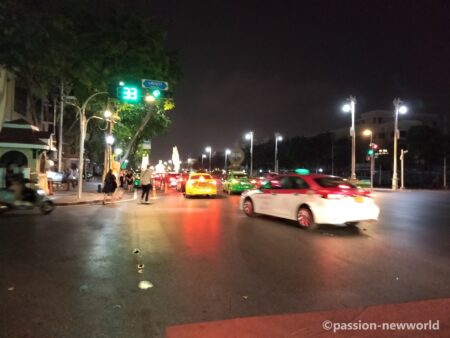 パヤタイ駅を降りると大通り沿いにタクシーが数台停車している。深夜到着の外国人観光客目当てだろう。「カオサンまでいくら?」と聞くと「300バーツ(1200円)」と吹っ掛けてくる。当然、あり得ない訳なので、パヤタイ通りまで出て流しのタクシーをつかまえることにした。ちょうど空車が来たので手を上げた。タイではタクシーを停める際、手を斜め下に伸ばしてひらひらさせるそうだ。つい日本の習慣が出てしまった。