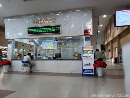 チケット売り場は駅構内中央あたり。チケットはソフトシートで35万ドン、日本円で2187円だ。