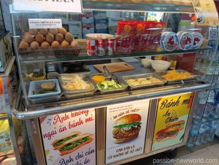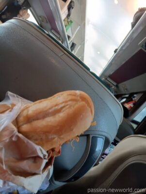 ご飯の上に肉料理や豆類などを置く、いわゆるぶっかけ飯で、値段は50万ドン(300円)。筆者は駅構内で買っておいたサンドイッチを食べることに。