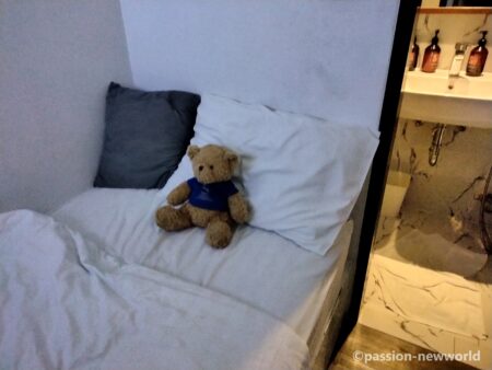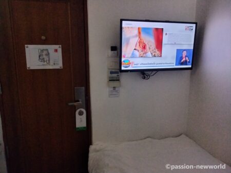 小さなシングルベッド1台に窓なし、眺望なし、というのが難点だが、朝食付きは非常に助かった。なぜか室内に冷蔵庫がないのでご注意を。