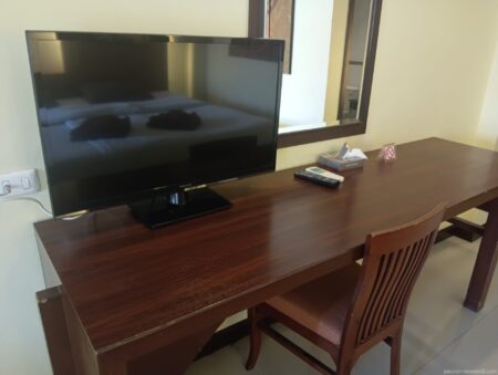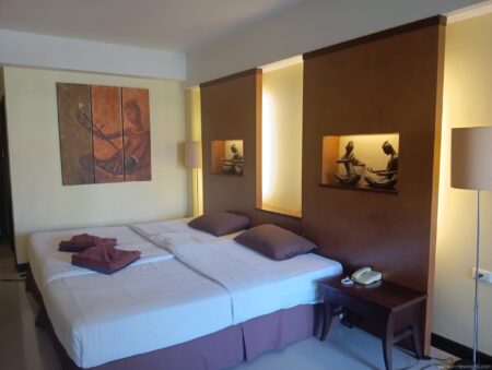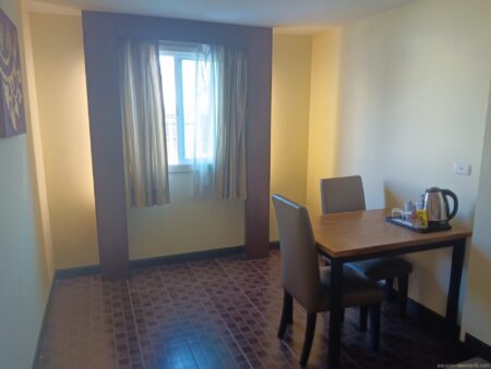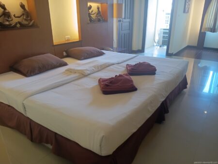 さて、ホテルの建物自体、かなり古くなってきた印象はあるが、清掃が行き届き清潔さをきちんと維持している。タイでよく出没する小さなアリもまったく見なかった。とにかく部屋が40平米あるので開放的な気持ちになるのがうれしい。雨季のローシーズンに入ると日本円で4000円以下というリーズナブルな値段になる(agodaで5月の宿泊費を検索結果)。