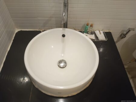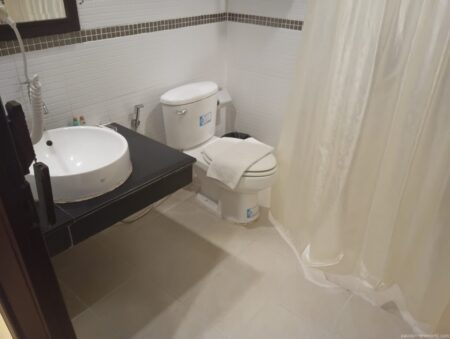 さて、水回りをチェック。シャワー室はカーテンがあるのでトイレがびしょ濡れになることはなかった。