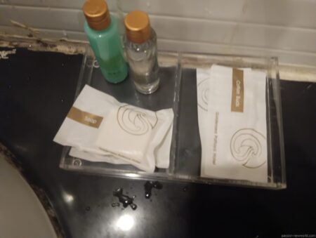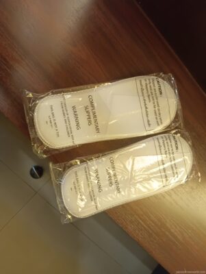 うれしかったのが使い捨てのスリッパ。日本の100均ショップで買った簡易スリッパを持参して行ったが、すぐに破れてしまうので何枚あってもうれしい。