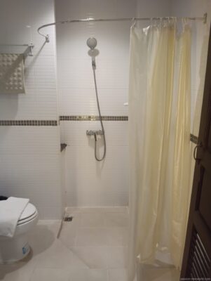 シャワー室を見ると建物の古さが分かるが、苦になるようなトラブルはなかった。シャワーの水圧は普通。お湯もすぐ出た。