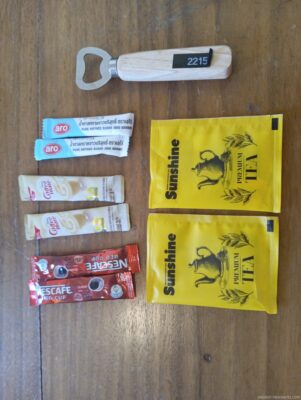 コーヒーと紅茶がそれぞれ2杯分。コンビニで買ってきた瓶ビールを開ける栓抜きもある。これが意外に便利なのだ。