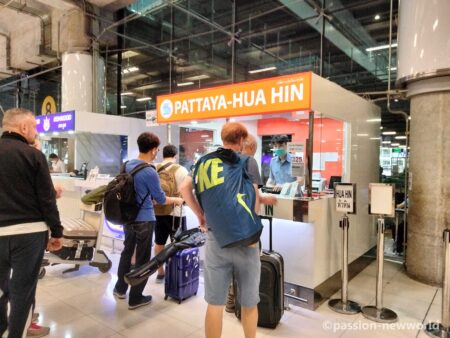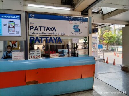 バンコク市内に用事がなく一刻も早くパタヤに到着したい人は、スワンナプーム空港の1階の8番ゲート付近にチケットカウンターがあるのでこちらでチケットが買える。カウンターはオレンジ色なので目立つ。大型バスで座席指定。料金は143バーツ(572円)。