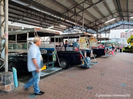 問題は終点が外れのノースパタヤバスターミナルになること。パタヤ中心地からかなり北にあるので、バスターミナルに到着したら改めてソンテウに乗り換えて中心部に向かうことになる。バスターミナルには4、5台のソンテウが待機しており座席が埋まり次第、次々と出発していく。運賃は50バーツ(約200円)。