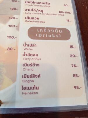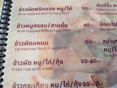 英語のメニューがあった。フライドライス(チキン・ポーク)が何と35バーツだ。