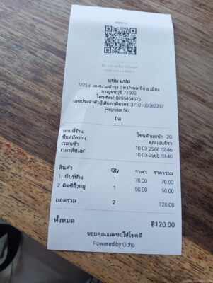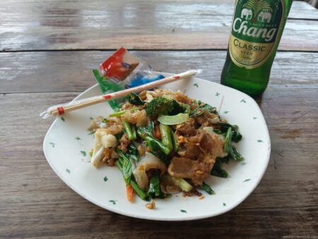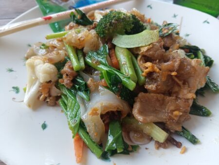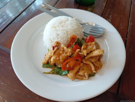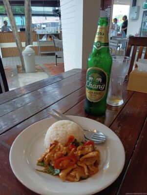 厚めの豚肉の噛み応えが良い。野菜も熱の通し方がうまく適度なシャキシャキ感を絶妙に残している。旨い!会計は120バーツ(530円)。