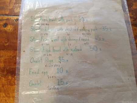 レストラン「獅子座」の並びにある目立たない“どローカル”な食堂。ガパオが30バーツから提供されている。
