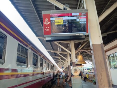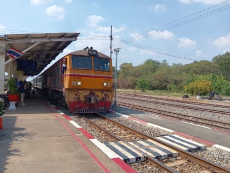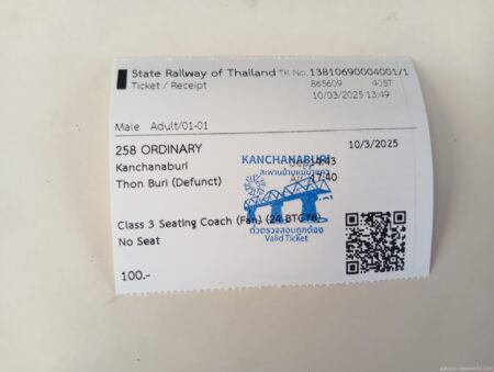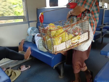 タイ国鉄カンチャナブリ駅からバンコク・トンブリ駅への行き方 普通車440円 車内販売が多くて面白い列車旅