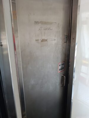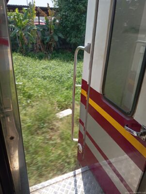 発車後、ぐんぐんとスピードを上げていくのはよいのだが、ドアは開けっ放し。よろけて転げ落ちたら大変だ。なので近づかない。